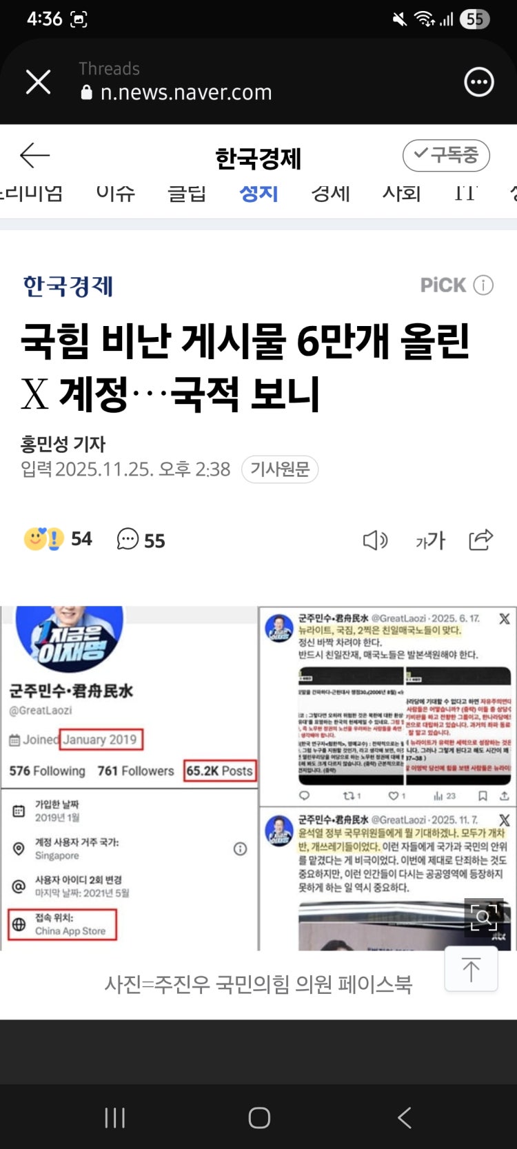 좌파들과 중국과는 한편이죠 트위터에서 이재명 엄청 지지하던 사람들 알고보니 중국이었어요